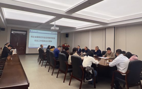 视频会议结束后,学校立即召开专题会议,学习贯彻落实会议精神。学校党委书记黄圣诚,党委副书记、副校长张志红出席会议。校长助理、招生与就业处处长唐成龙,各二级学院党总支书记、学生处负责人及招生与就业处相关就业老师参加会议。