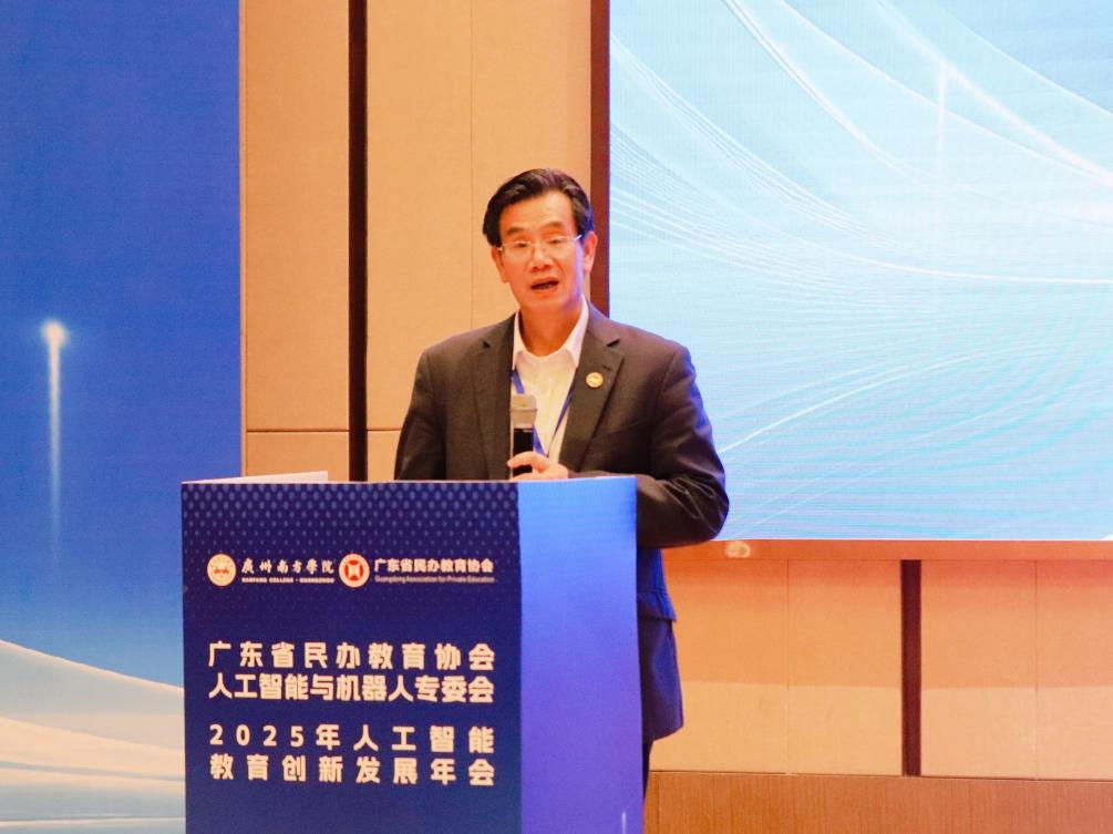 12月5日至6日,以“AI赋能教育创新·智慧引领未来”为主题的广东省民办教育协会人工智能与机器人专委会2025年年会在广州从化隆重举行并取得圆满成功。本次盛会由广东省民办教育协会指导,广东省民办教育协会人工智能与机器人专委会主办,常务副理事长单位广州南方学院工学院承办。来自省内外高校、科研院所及领军企业的两百余位专家学者与行业精英齐聚一堂,共同擘画人工智能教育发展的新蓝图。广州理工学院作为专委会理事长单位,深度参与并主导了此次盛会,彰显了学校在人工智能教育领域的引领作用与责任担当。