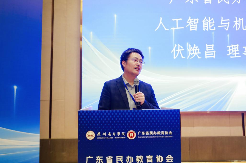 随后,专委会理事长、广州理工学院常务副校长伏焕昌教授代表专委会作2025年度工作总结与2026年工作展望报告。伏焕昌教授系统回顾了专委会自2025年4月成立以来,在组织建设、平台搭建、活动开展等方面取得的扎实进展,特别是在成功举办首期“人工智能教师专业能力提升研修班”之后,专委会系统规划了2026年“月月有活动”工作计划。他强调,面对人工智能技术的迅猛发展与教育数字化转型的迫切需求,专委会未来将更加聚焦于推动人工智能与机器人教育、技术与产业的深度融合,重点在制定相关教学与师资能力标准、建设优质资源共享平台、深化产教融合与校企合作、引导行业规范健康发展等方面持续发力,为广东省民办教育的高质量发展与产业升级贡献专业力量。伏焕昌理事长的报告脉络清晰、目标明确,为专委会下一阶段的奋进指明了方向。