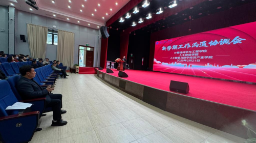 在会议的专项工作部署环节,计算机科学与工程学院副院长申青连对新学期的教学运行工作进行了详细布置。人工智能与数字经济产业学院副院长陈易平对毕业实习工作进行了专项部署。