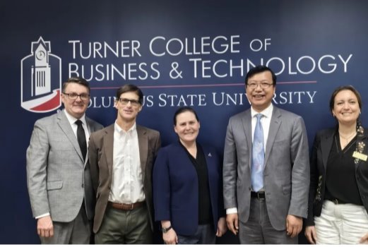 17日,黄南松一行抵达哥伦布州立大学,分别与该校教务长坎贝尔(Campbell)女士、吞拿(Turner)商学院与科技学院院长黛博拉·基德(Deborah Kidder)、营销与管理系主任约翰·芬利(John Finley)、计算机科学系主任拉尼阿·霍德(Rania Hodhod)、全球交流中心执行总监埃里克·思比仕(Eric Spears)等进行了会谈。双方就中美人才培养计划“1+2+1”项目可能合作专业、学分转换与时间规划等进行了全面探讨。黄南松对该校在计算机科学与机器人工程等领域的优势表示高度认可,表达了与该校开展深入合作的意愿。哥伦布州立大学对我校应用型人才培养模式及实践教学模式给予充分关注。双方还就项目扩展及在线交流等合作形式进行了探讨。