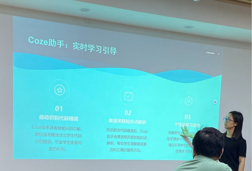 比赛现场,选手们围绕各自主讲课程通过现场汇报和答辩的形式,展示了自己在AI赋能课程教学创新方面的独特见解和实践成果。有的团队利用AI智能教学系统,实现了对学生学习情况的实时监测和精准分析,根据学生的学习进度和薄弱环节,为他们量身定制个性化的学习方案,真正做到了因材施教;有的教师借助AI数字人技术,将抽象的知识以生动形象的视频方式呈现出来,大大提高了学生的学习兴趣;还有的教师通过开发AI智能批改作业产品,提升教师批改作业的效率和精准度,及时发现学习问题,提升教学成效。