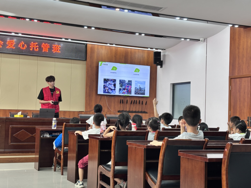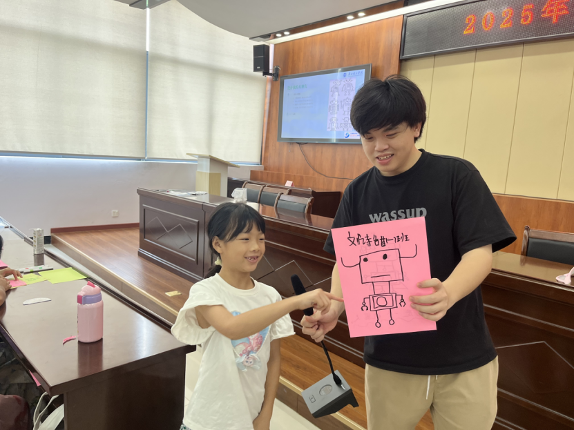 7月17日,“千壑争流组”暑期实践队继续在博罗县龙华镇文化馆爱心托管班开展AI科普教学活动。继15,16日成功开展前四节AI启蒙课后,队员们今日继续以生动有趣的形式,带领孩子们探索AI在军事、社交、音乐、环保等领域的奇妙应用。