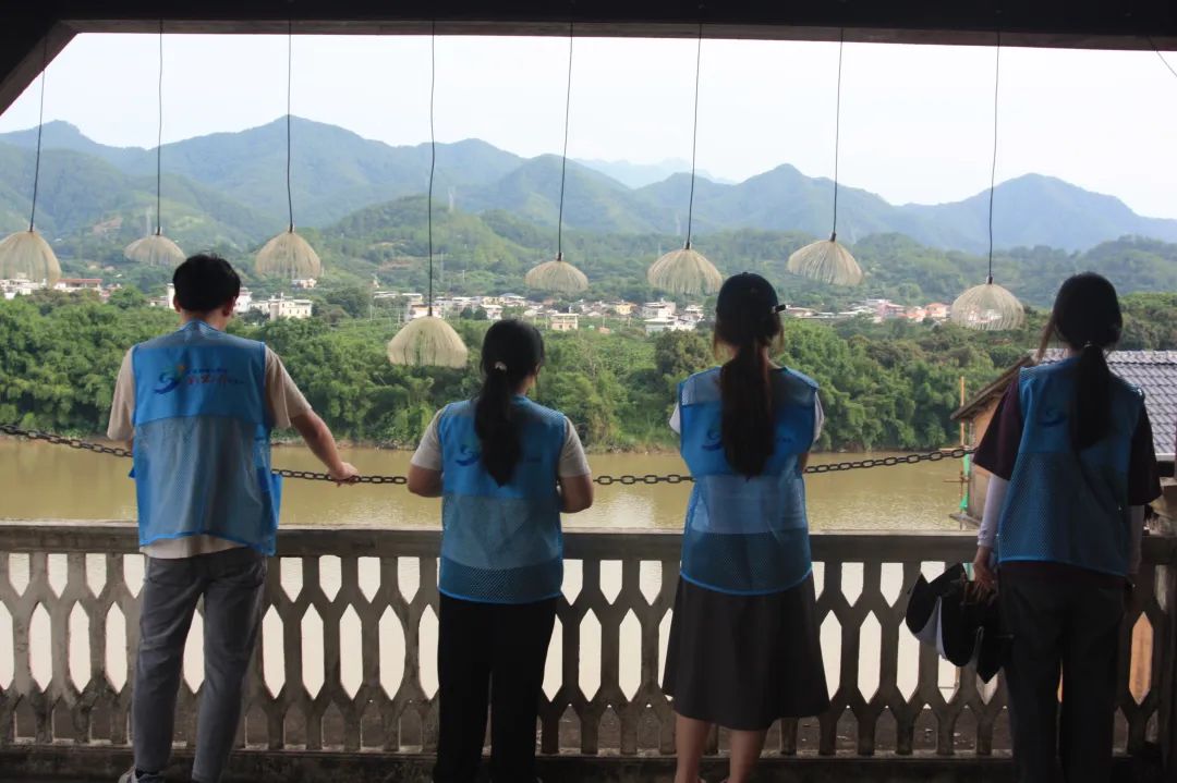 松韵客乡实践队队员在顶楼欣赏松口全景