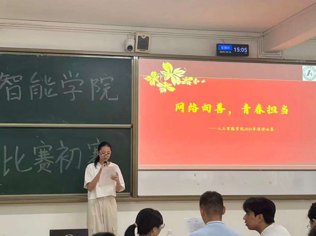 10月16日,广州校区率先在6栋216拉开帷幕,“网络向善,青春担当”的主题如同一束光,照亮了网络世界的复杂与多元。在初赛现场,选手们虽仅有3—5分钟的主题演讲时间,却毫不怯场。他们紧密结合当下网络热点,从网络暴力、网络公益到网络文化传播等多个角度,阐述着青年一代对于网络向善的理解与践行。有的选手分享了自己参与网络公益活动的经历,用真实的故事展现青春在网络善举中的温暖力量;有的则剖析网络暴力现象,呼吁大家共同营造清朗的网络空间。他们用青春的声音,传递着对网络环境的关切与责任,轻松迈出了演讲征程的第一步。