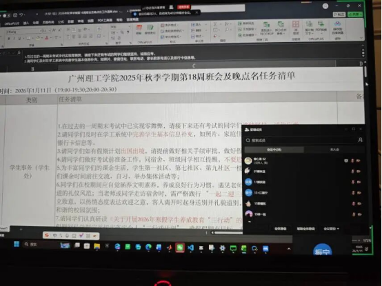 为落实学校各项工作要求,强化学生日常管理,引导学生诚信应考、安全度假,1 月 11 日晚,广州理工学院9428cn太阳集团古天乐以班级为单位,召开第十八周班会。
