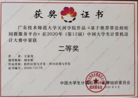 近五年来,组织学生参加蓝桥杯大赛、计算机设计大赛、数学建模大赛、“大唐杯”信息通信技术大赛、计算机能力挑战赛、全国大学生软件测试大赛、数据分析应用与实践等各类比赛,获得国家级三等奖2项、省级一等奖19项、其它奖项40多项。