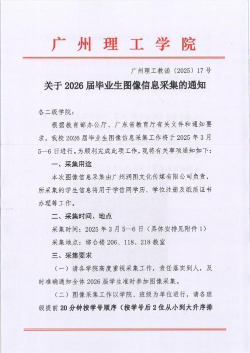 关于2026届毕业生图像信息采集的通知