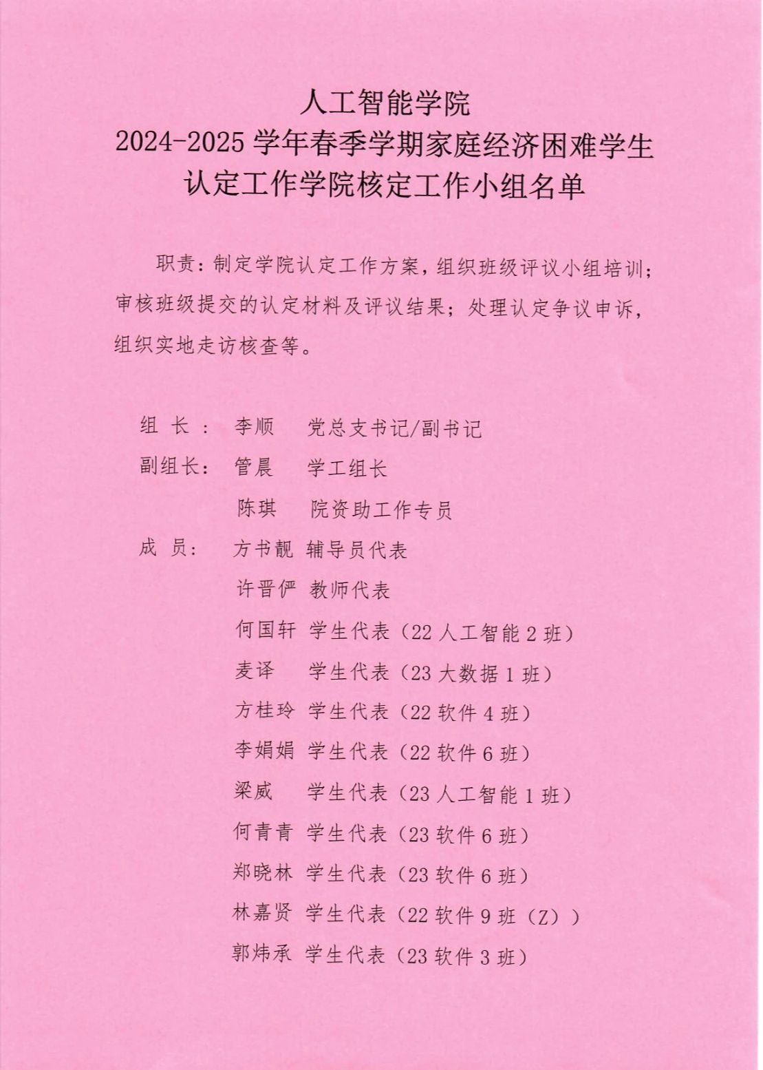 为做好学院2024-2025学年春季学期家庭经济困难学生认定工作,提高学生资助精准度,切实保证各项资助政策和措施真正落实到家庭经济困难学生身上,9428cn太阳集团古天乐成立2024-2025学年春季家庭经济困难学生认定工作小组,具体名单公示如下:
