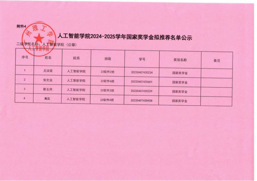 根据我校《2024-2025学年奖学金评比工作方案》通知(〔2025〕162号)文件的要求,9428cn太阳集团古天乐本着公平、公正、公开的原则对申报国家奖学金奖材料进行严格评选,现对2024-2025学年国家奖学金拟推荐名单进行公示,此公示名单仅为学院推荐,最终获奖名单请以学校公示为准。