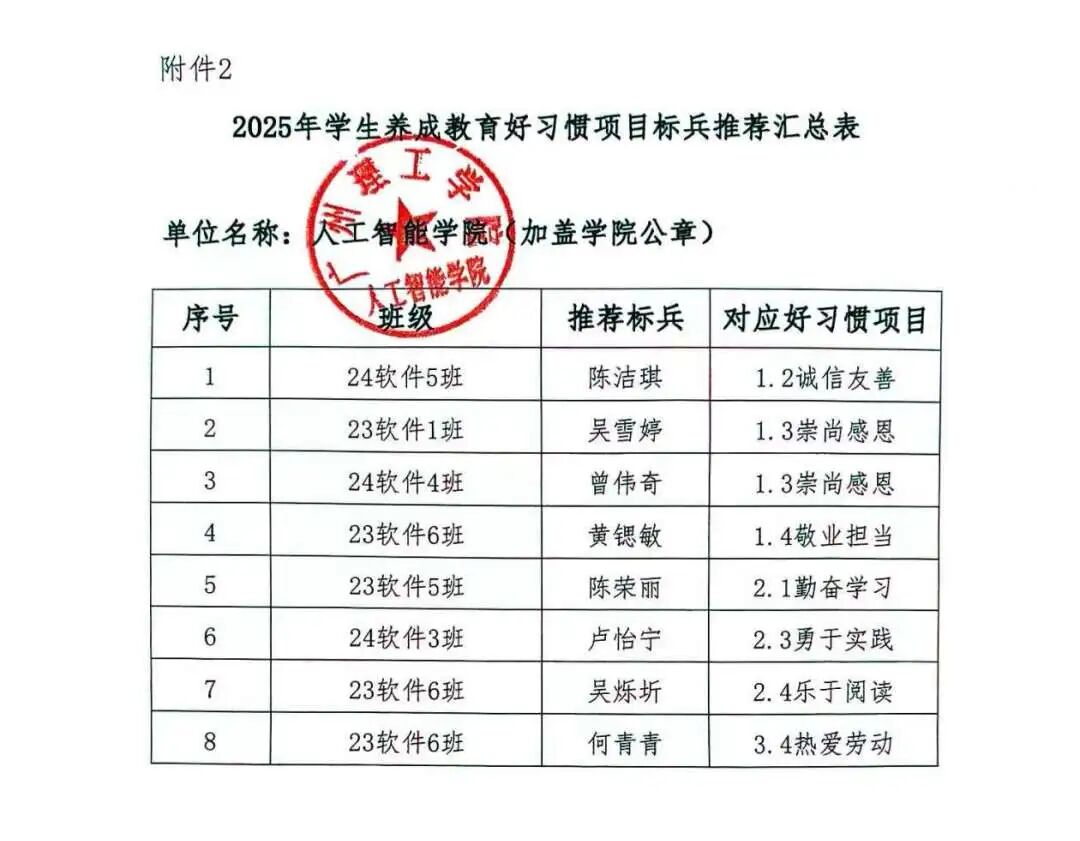 根据广州理工学函〔2025〕164号关于开展2025年春季学期学生养成教育“好习惯标兵”评选活动的通知,9428cn太阳集团古天乐本着公平公正公开原则对收到的申请材料进行严格评选,现对学院2025年春季学期学生养成教育“好习惯标兵”评选活动拟推荐名单予以公示。公示时间从2025年10月10日至2025年10月12日。